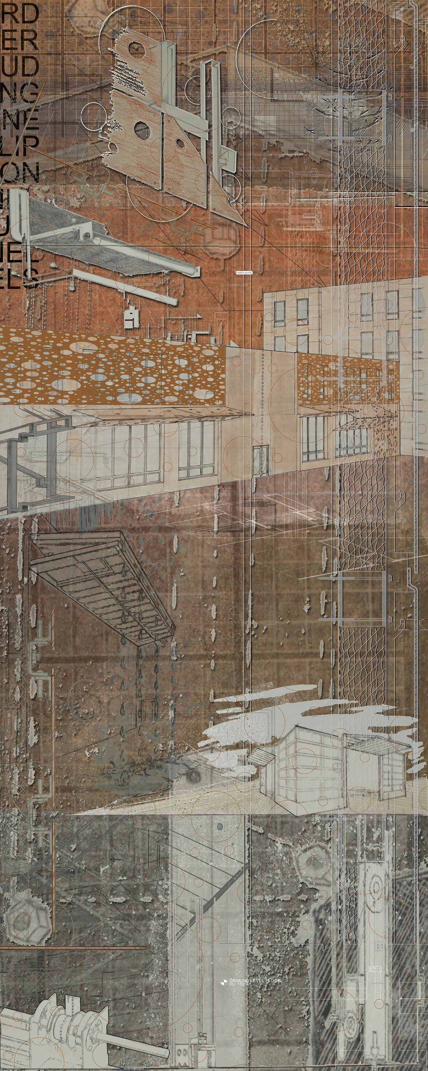 The final drawing for the class was inspired by Carlos Scarpa’s layered drawings. The drawing is the result of combining four separate drawings, each dealing with a different detail inspired by an architect or an accepted techtonic condition and adapted to meet the needs of a condition. I chose to use conditions from the project in my concurrent comprehensive studio class.